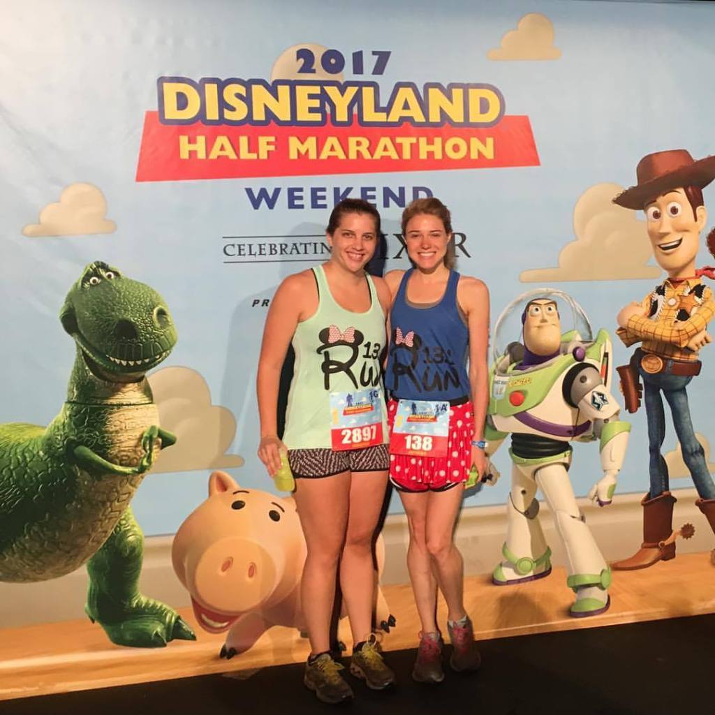 While my body didn’t so much mind the 3:15am wake up call since it was 6:15am Atlanta time I had to rally Kristen, but she was pretty well on top of things. We grabbed our bars and coffee and walked (which is a nice change of pace to the buses you have to catch at WDW) to the start line. We got a quick picture with the banner, fueled, and walked to the corrals. Hot & Humid was an understatement – I clearly brought my southeast weather with me. Kristen did AMAZING in her first half marathon. We snagged some pictures, were excited to see angels stadium and then the finish line and she ran the WHOLE time. She’s a rockstar – of course I already knew that. Zack came to see the finish and spent the next hour with us as we changed and recovered with food and drink, well as best you could in the heat. The rest of the day was spent in the parks with frequent air conditioning and sitting down breaks. We had upgraded to a park hopper the day before and that was well worth it. My favorite moment in Disneyland Park was my interaction with Cruella de Ville; in California Adventure there were a few: pretty much everything about Carsland, meeting Black Widow, and the pride of riding Guardians of the Galaxy (if you know me you know I HATE drops – and it was confirmed here), and California Screamin’.