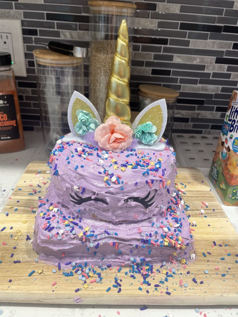 - Horn & eyelashes from Amazon here: Cake Horn & Eyelash Set